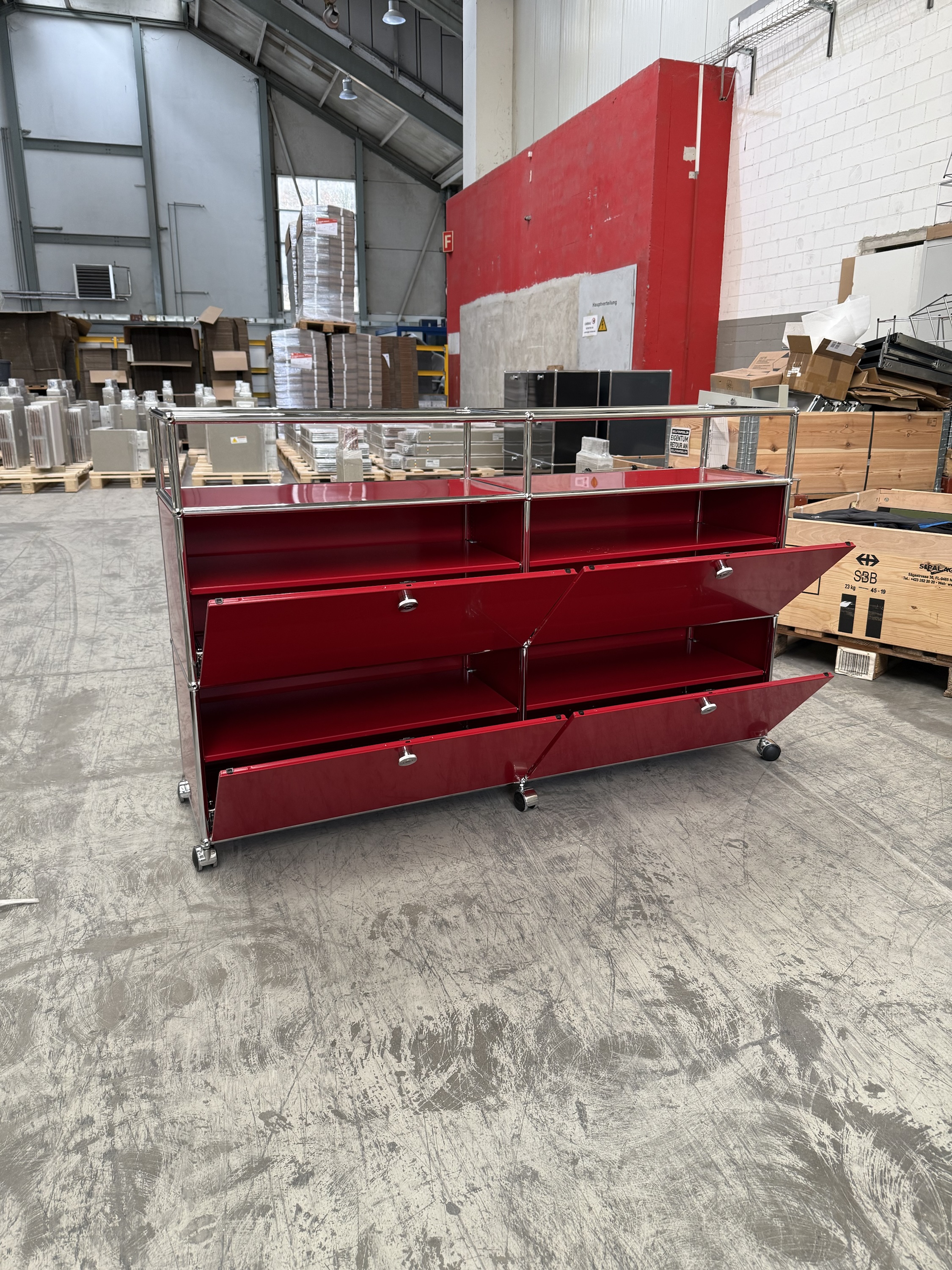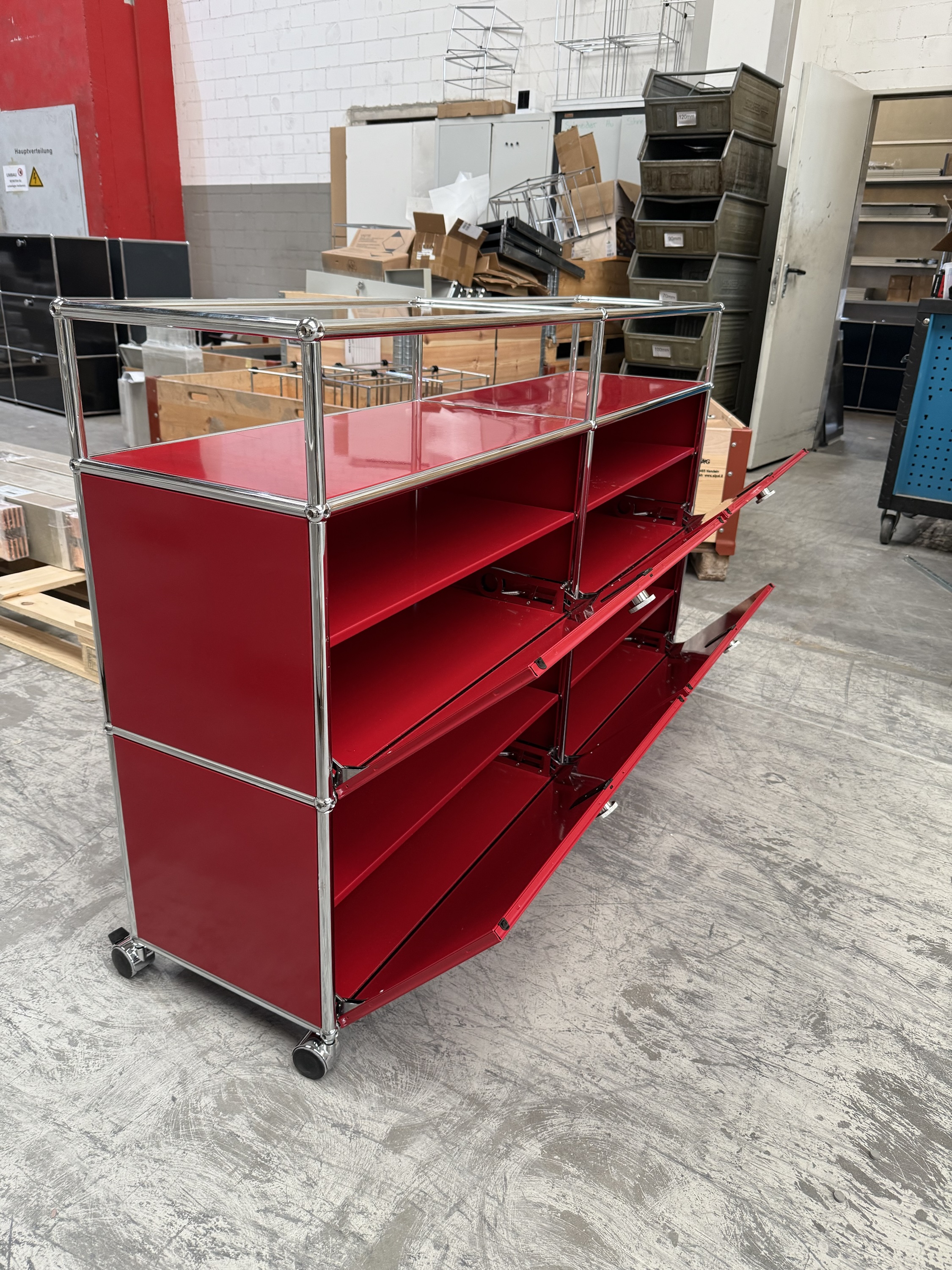 USM Haller Sideboard 2×3 Rubinrot Top Zustand mit Glas