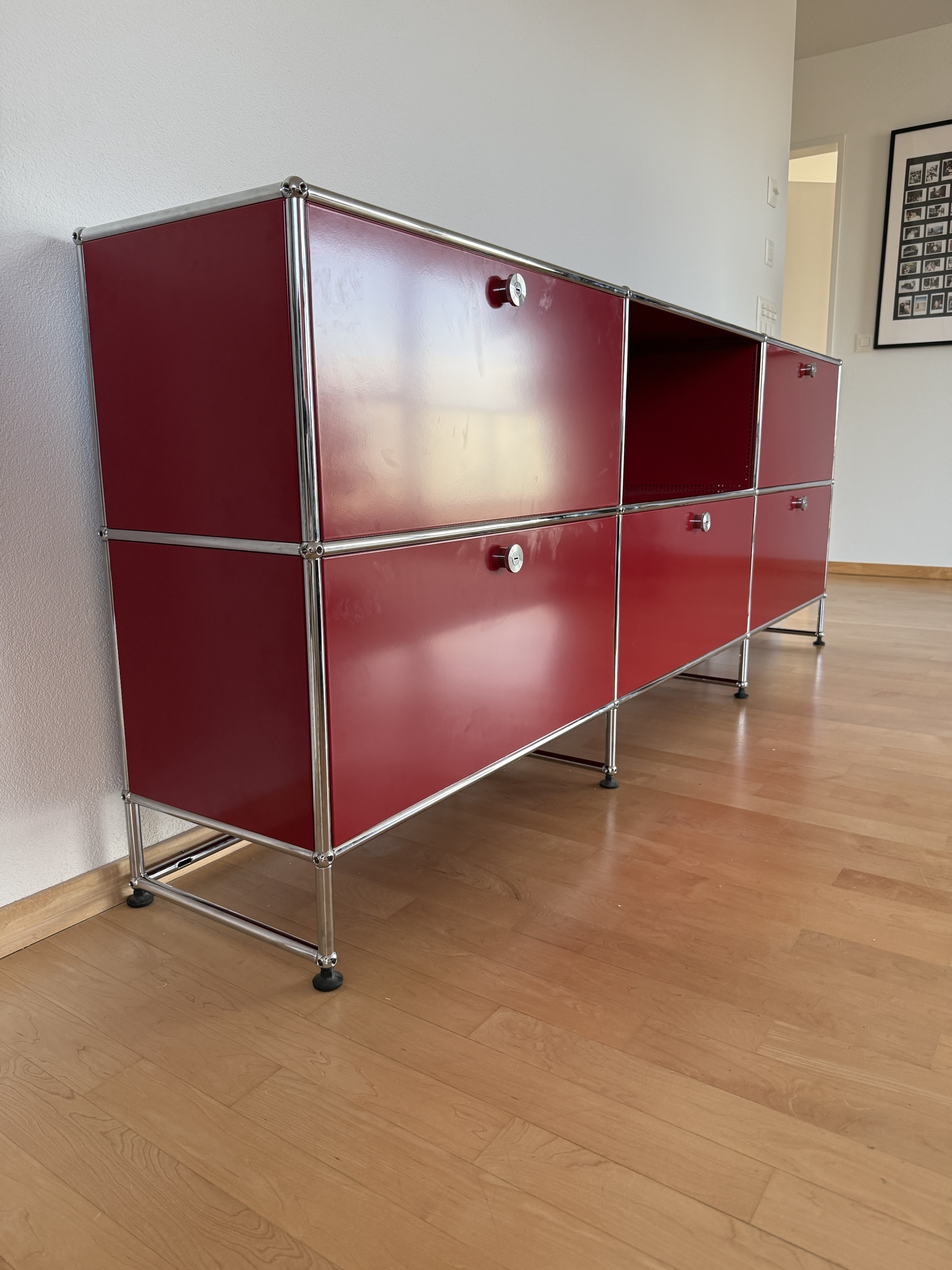 USM Haller Sideboard 2×3 Rubinrot Top Zustand